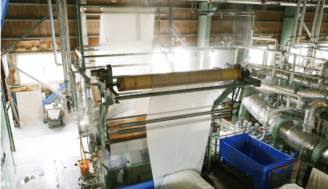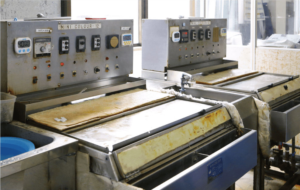 遠心分離機を経て、自動拡布装置にて仕上げの準備をします。