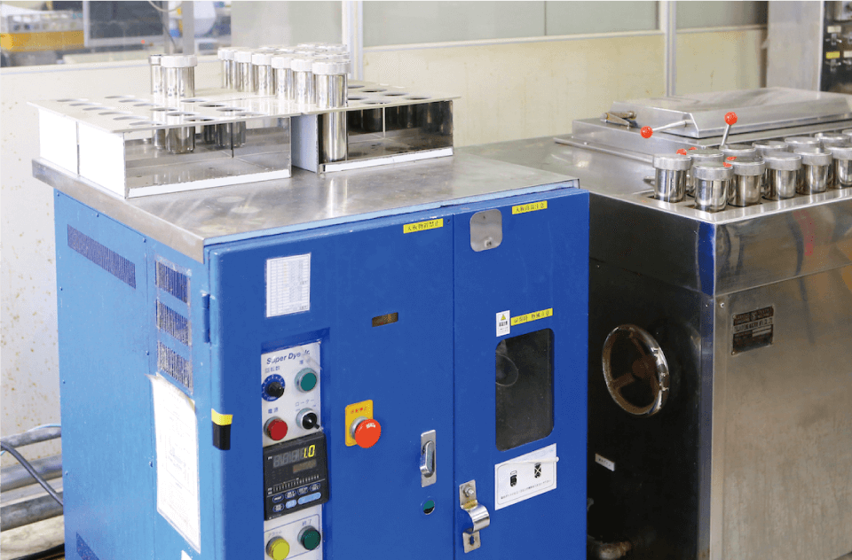 2.5g〜5.0gの生布で試験的に染色します。 少量の糸や生地に対して均一に処理をすることが可能な装置。