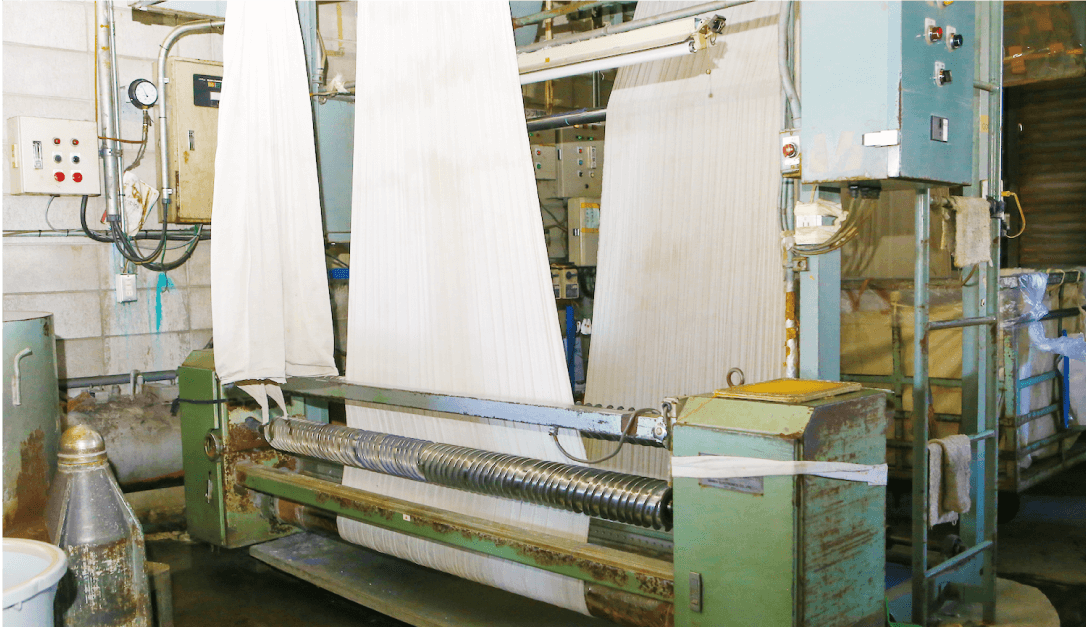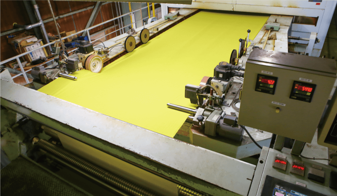 仕上げ前に多種多様な樹脂加工をし、生地の改質を行います。