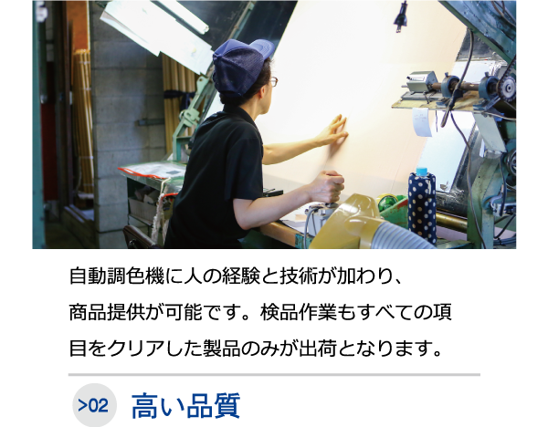 お客様のニーズに合わせた生地への着色、製品化を行なっております。織物生機から加工染色仕上げ、試験反から中量産・本量産へと段階に沿ったスケールアップや販促見本用・展示会着分等の10mからの染色、染まっている生地からの染め替えも可能です。生地の染色についてお気軽にお問い合わせください。福井県で38年の実績があり、地元産元商社様からのご信頼を頂いております。